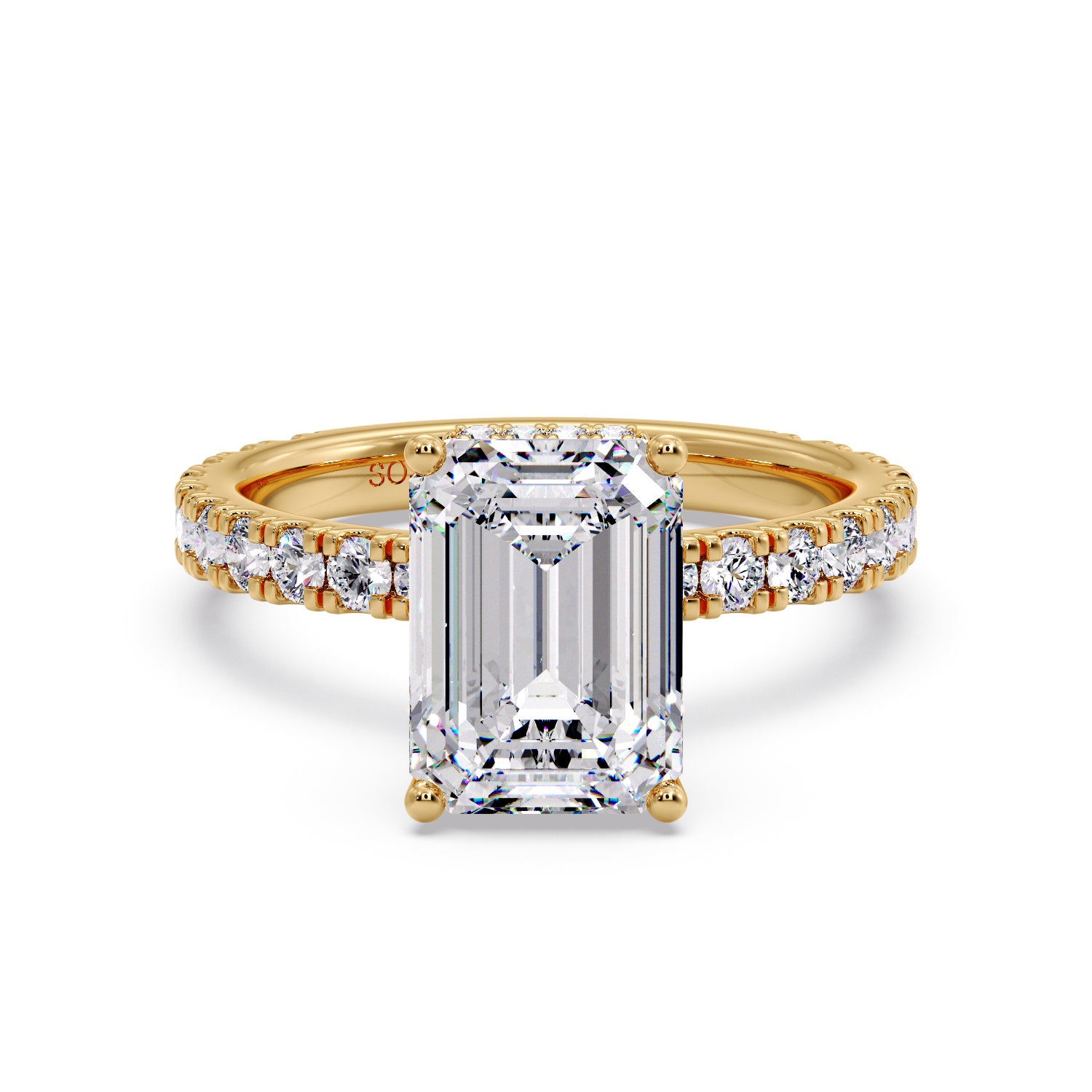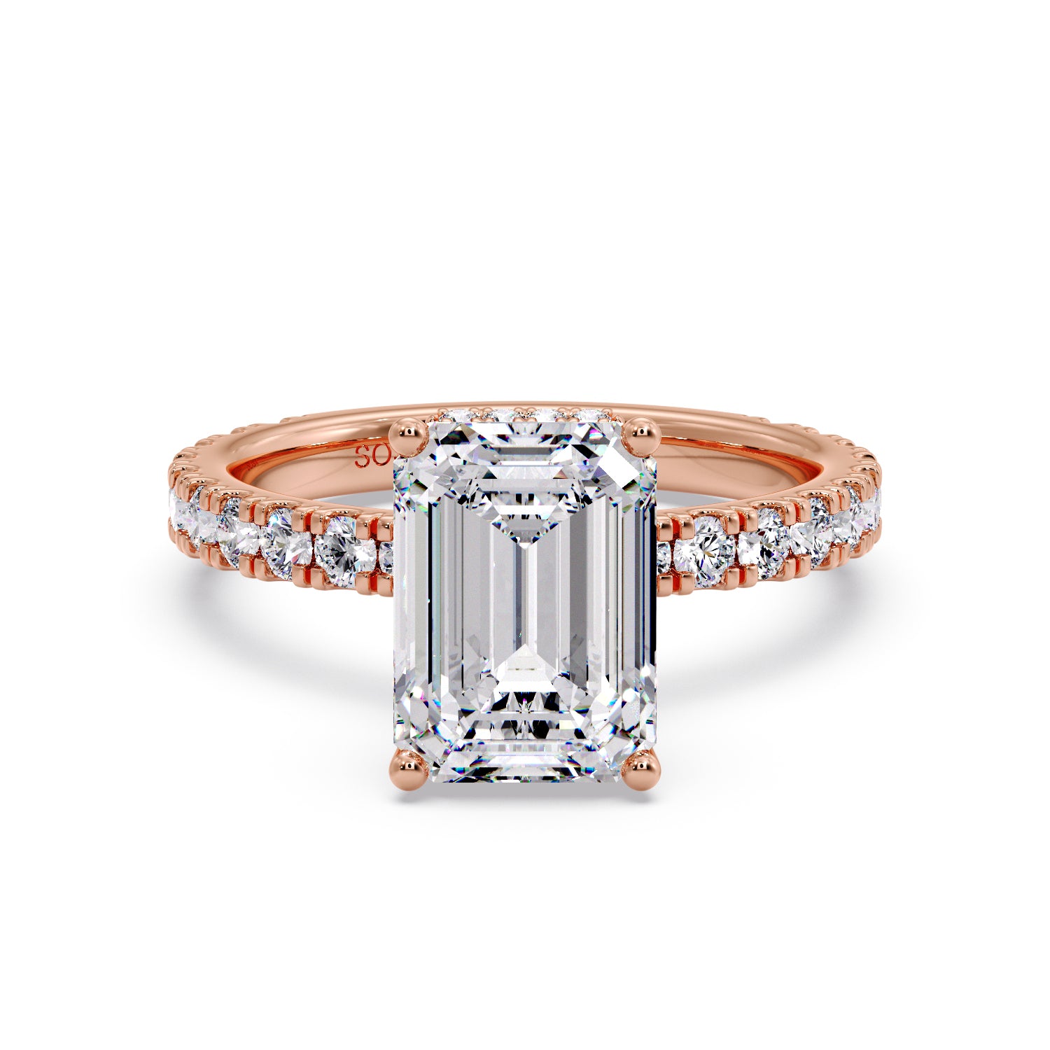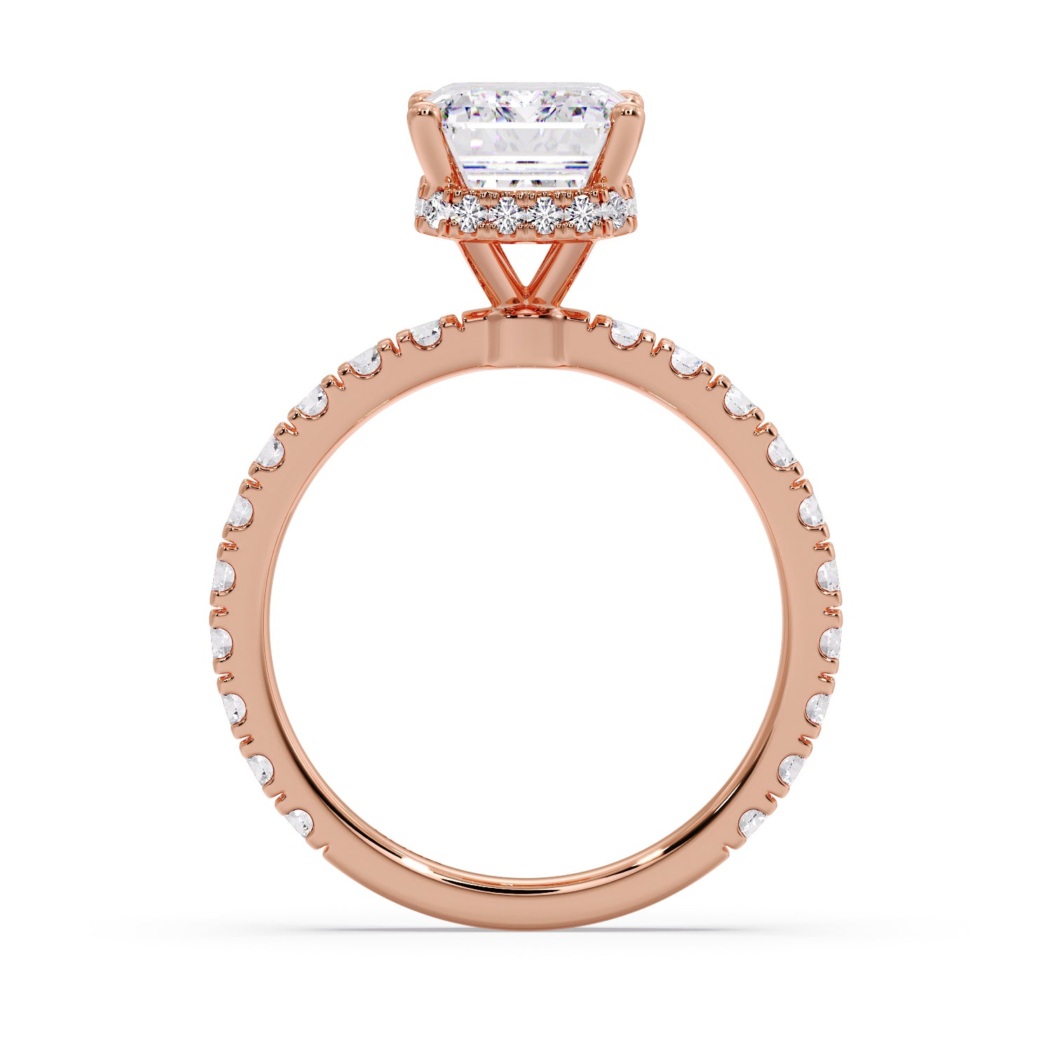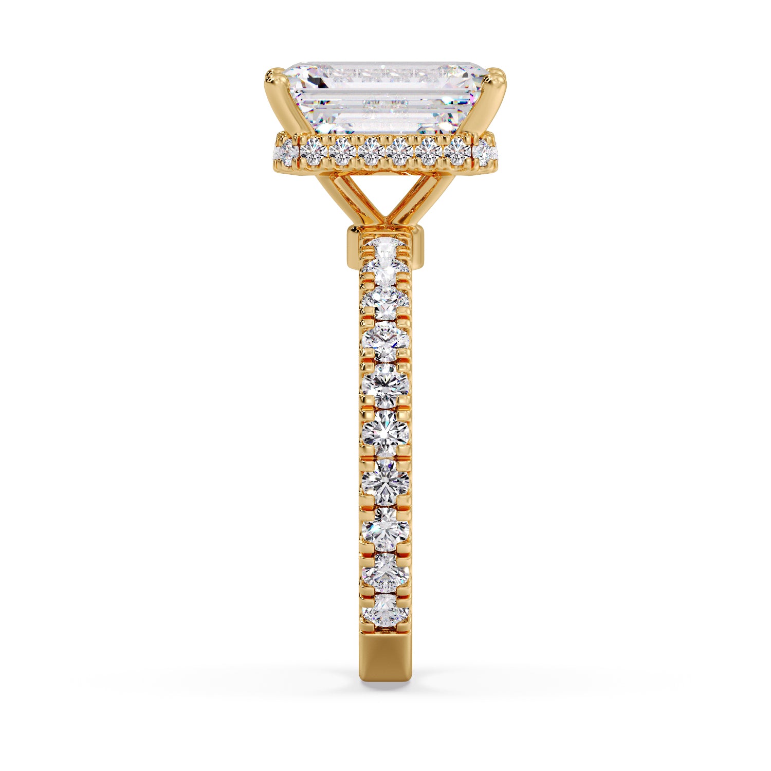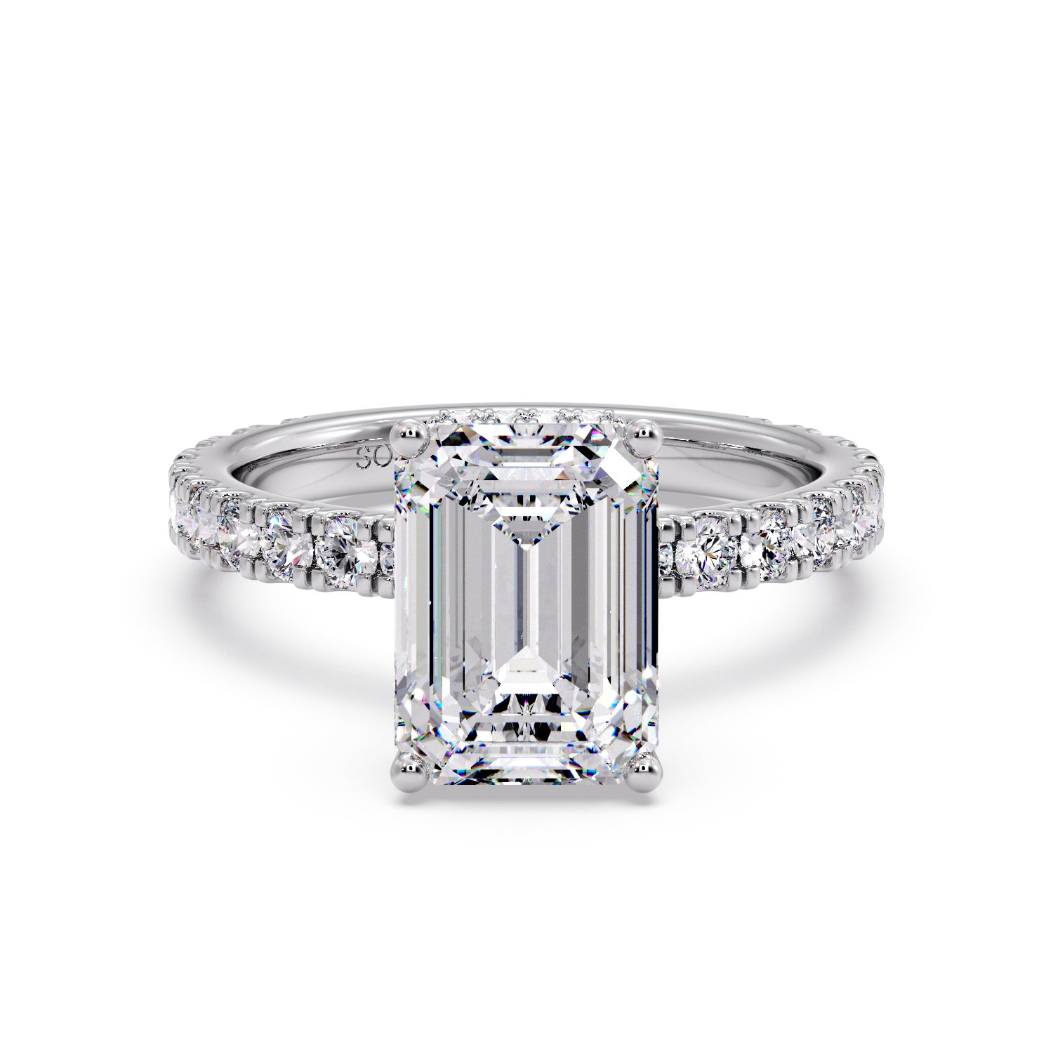 Emerald diamond with pave/hidden halo setting