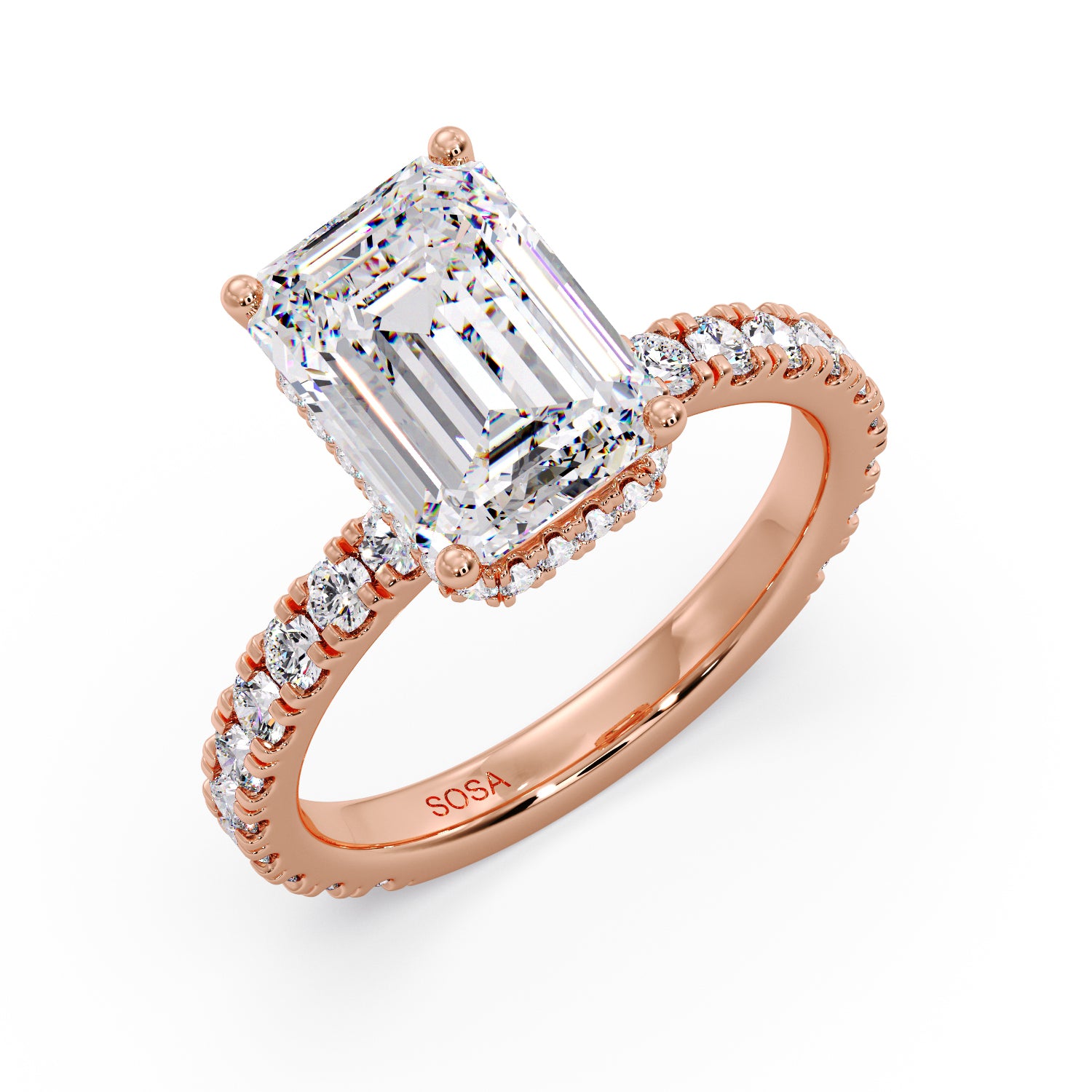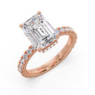 This exquisite ring features an Emerald Cut Lab-Grown Diamond, graded VS1 clarity and D color, beautifully set in our Pavé Hidden Halo setting for a refined and timeless appeal.
