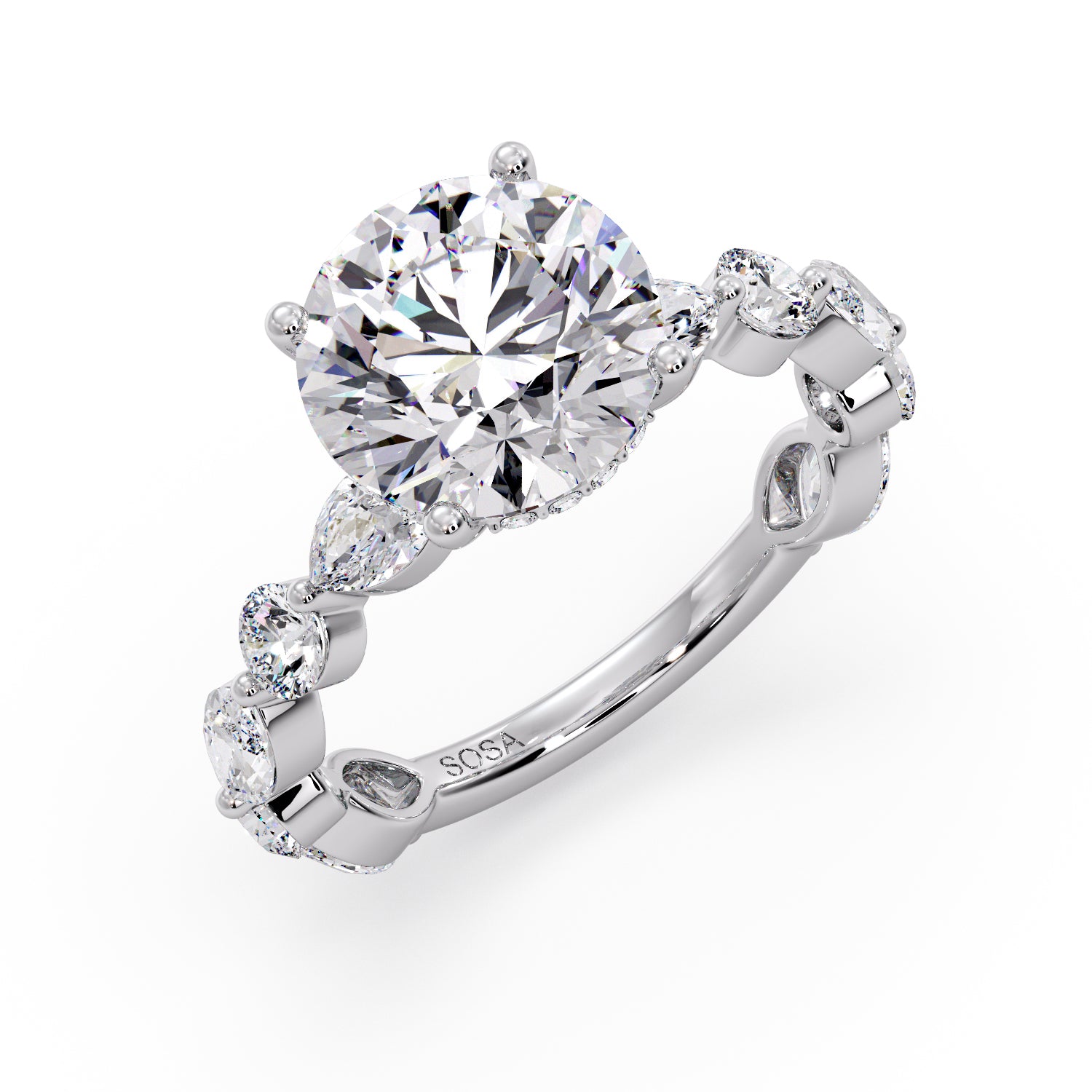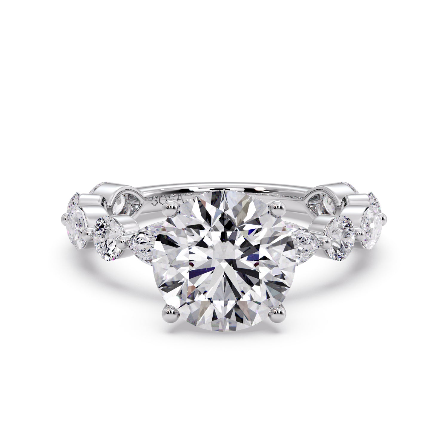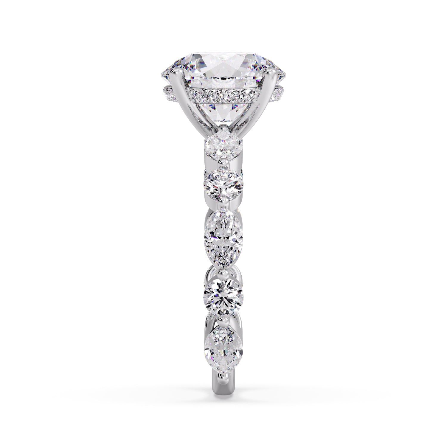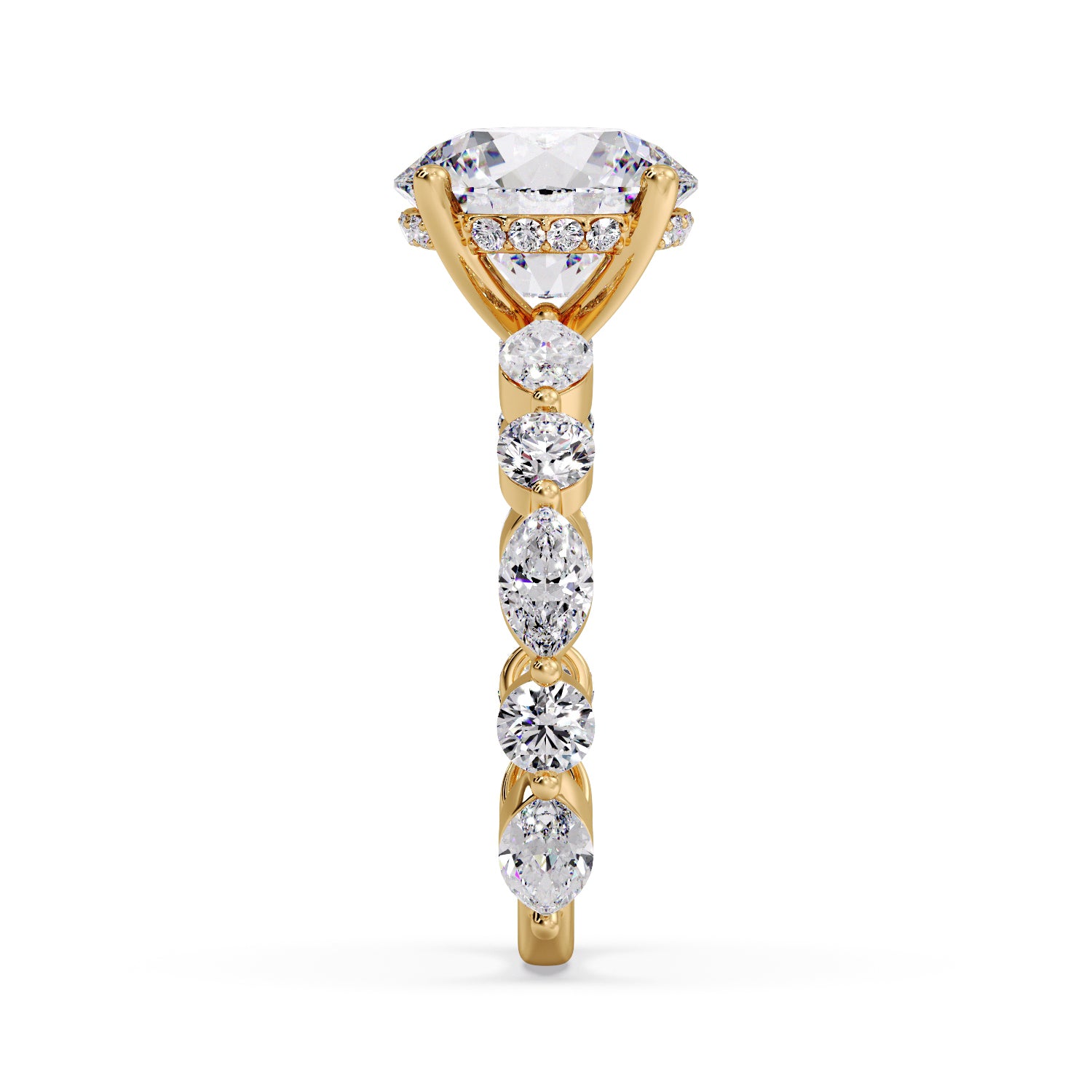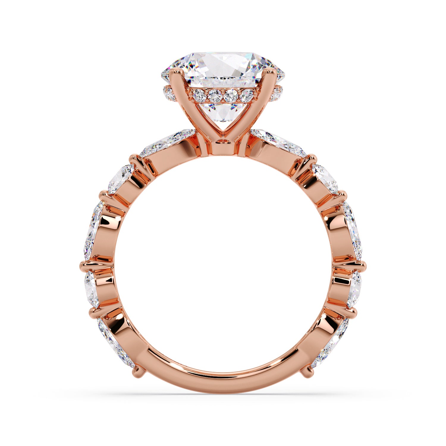 Ring features a Round Lab-Grown Diamond, graded VS1 clarity and D color, set in our signature Round and Marquise Diamond band.