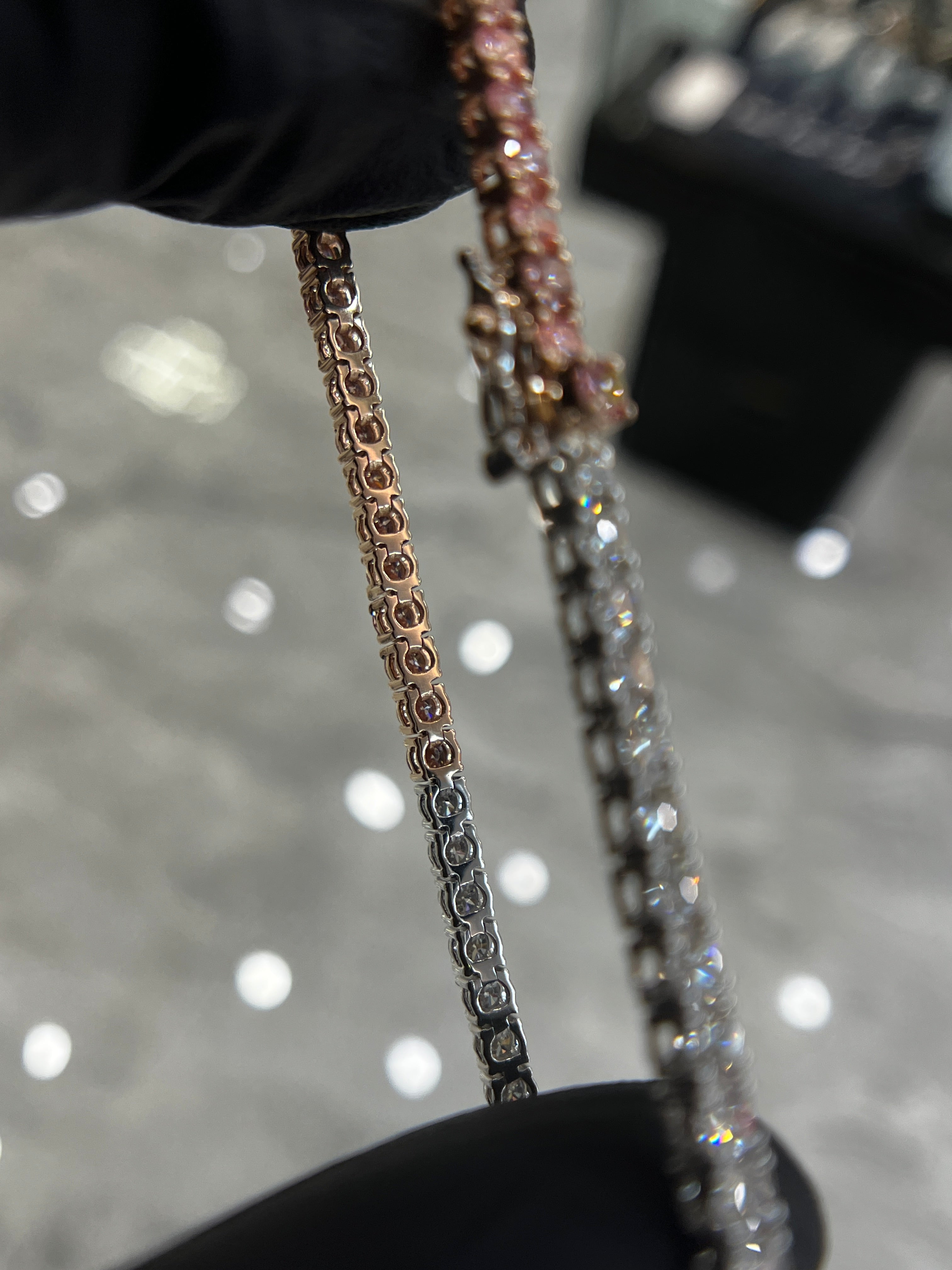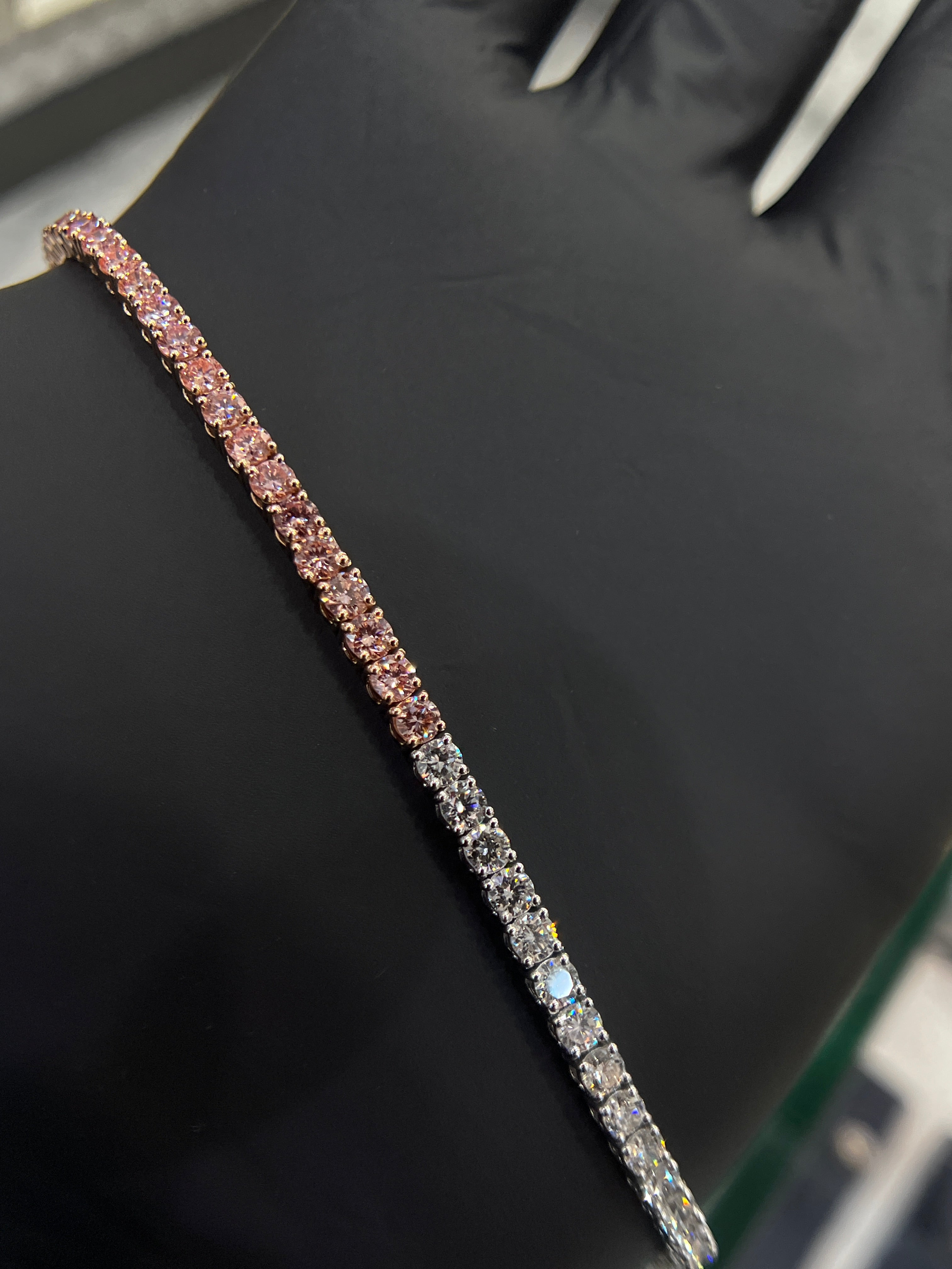 Pink & White round brilliant tennis bracelet Half/Half