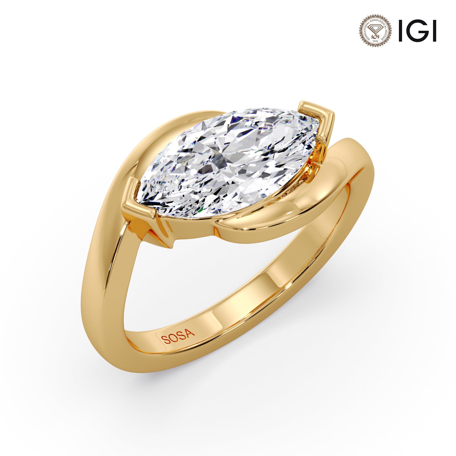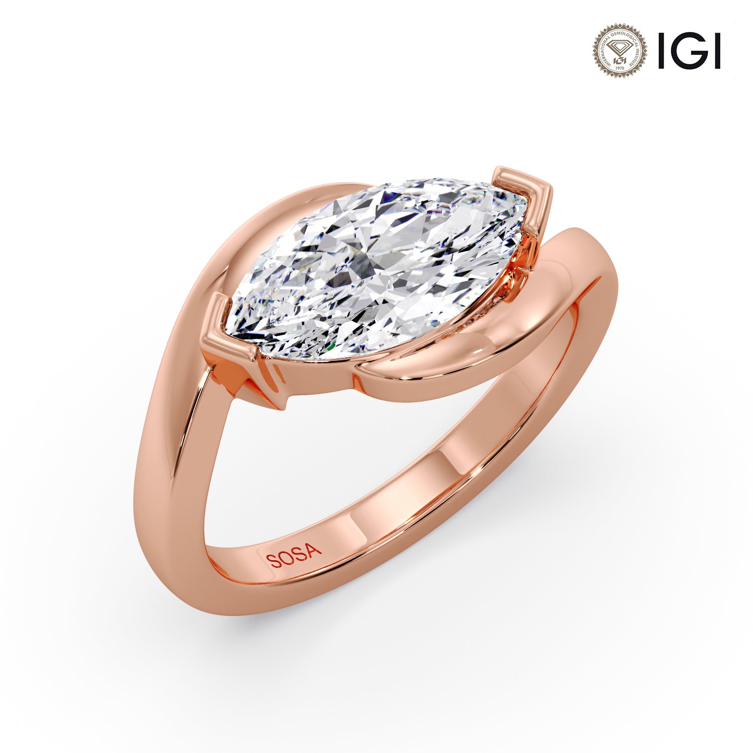 The Celeste Marquise Ring embodies refined sophistication and modern artistry. At its heart lies a brilliant lab-grown marquise-cut diamond, certified by IGI.
