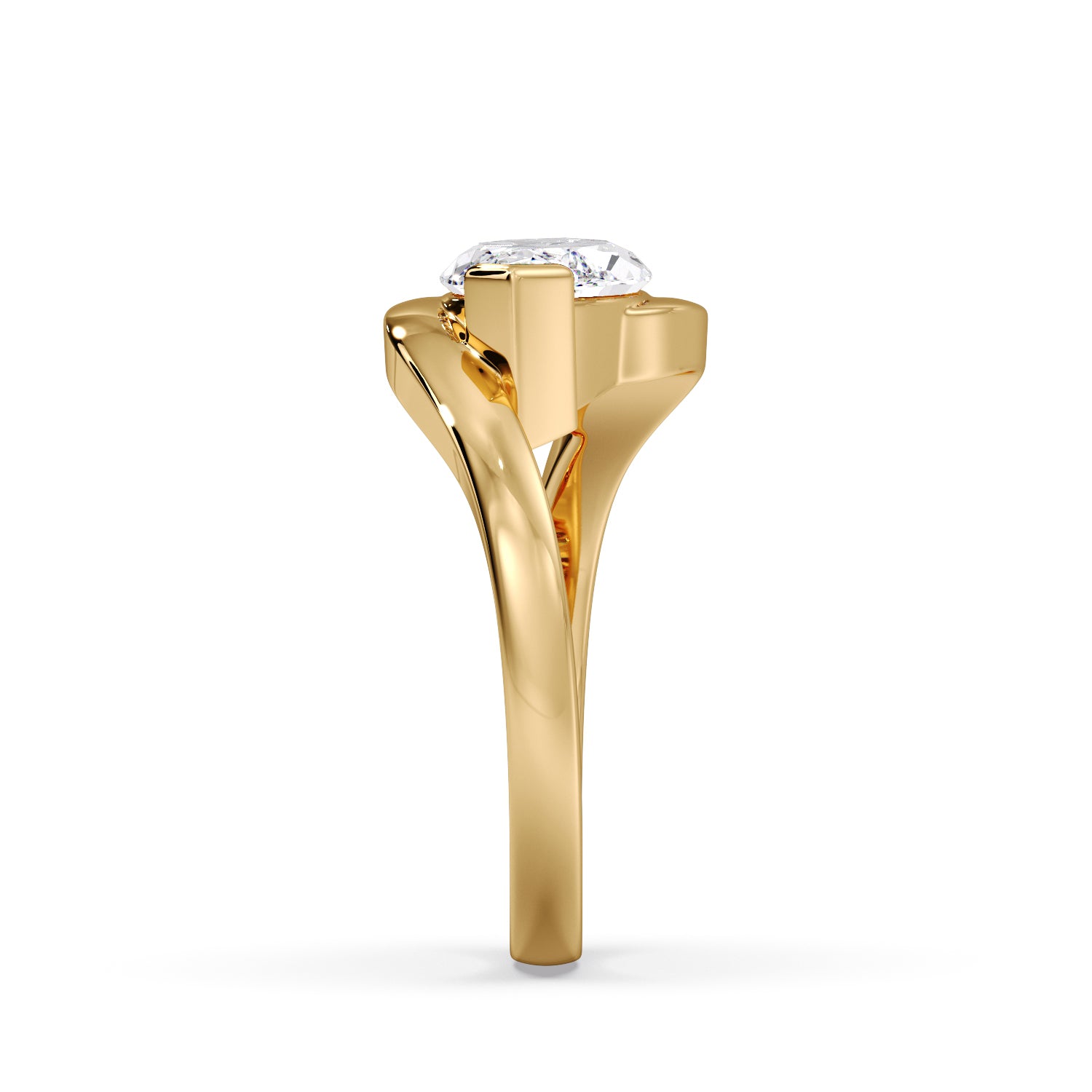 Expertly crafted in 14K gold—available in your choice of metal color—this design features a secure bezel and V-prong hybrid setting that accentuates the diamond’s graceful silhouette while offering superior protection. The 2.4mm band provides a sleek, balanced profile, complementing the diamond’s elongated brilliance.