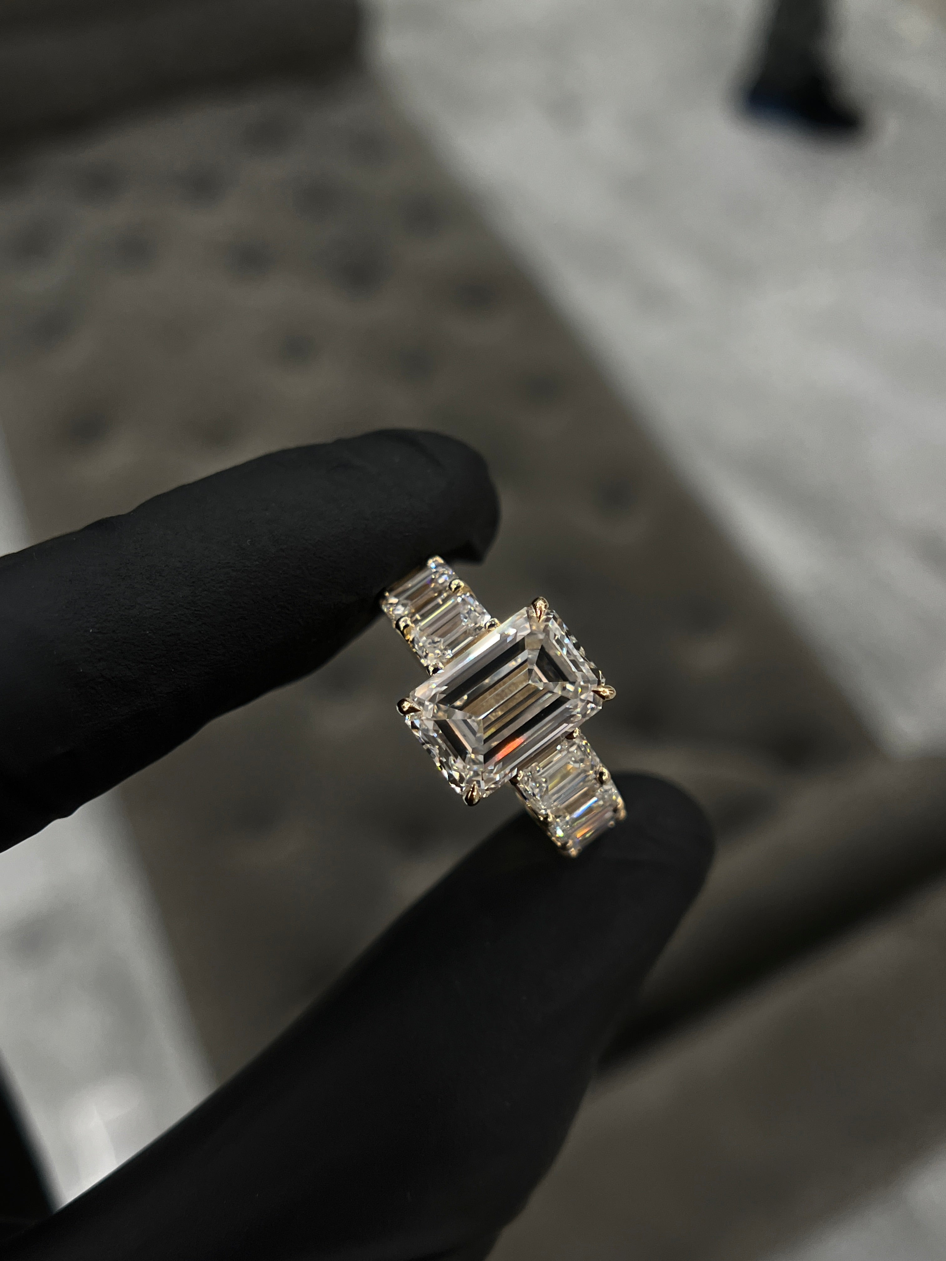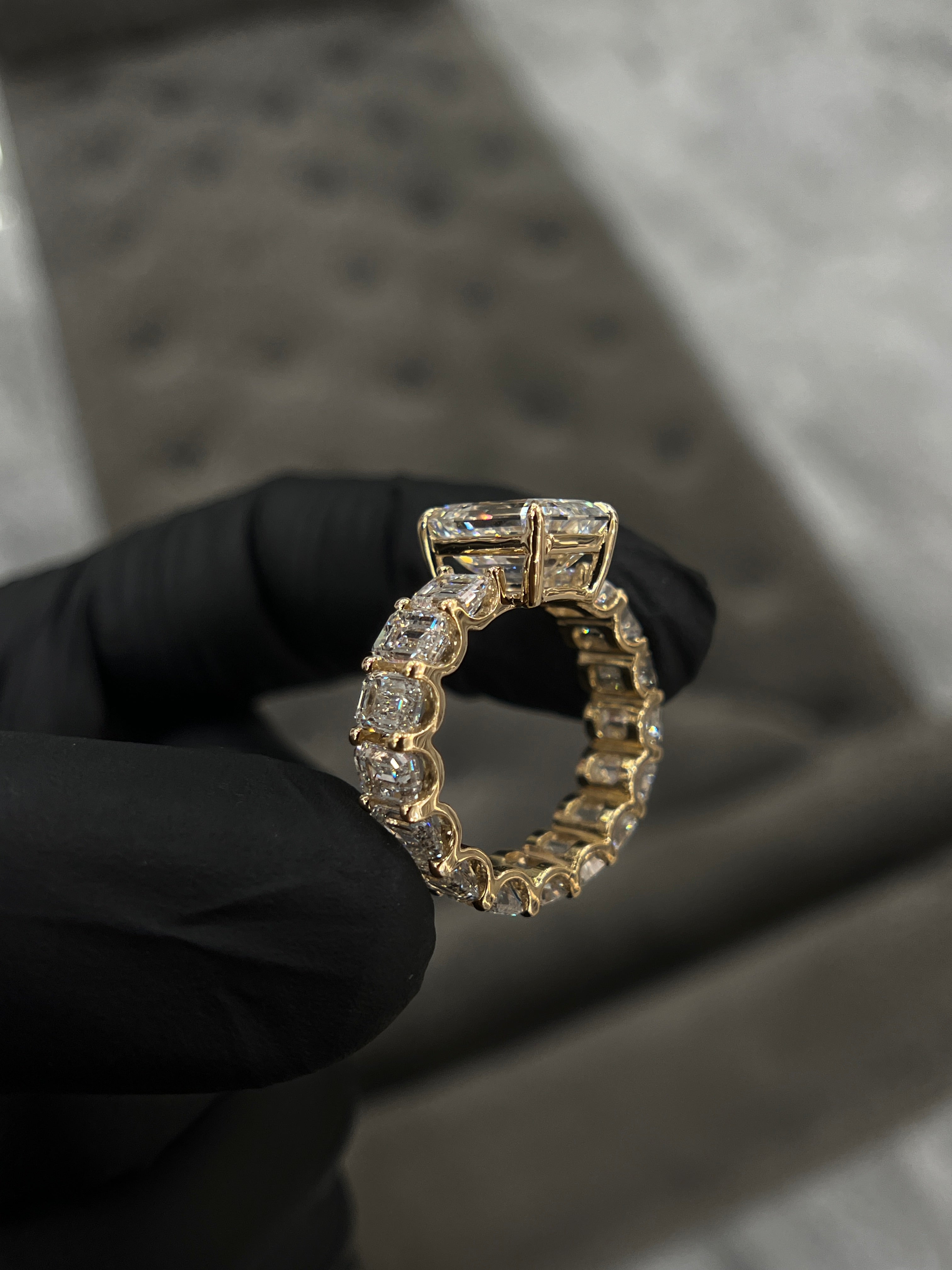 Emerald Cut Lab-Grown Diamond Ring — a masterpiece of modern elegance and meticulous design. The center diamond, graded D color and VS1 clarity, is IGI certified for quality and authenticity.