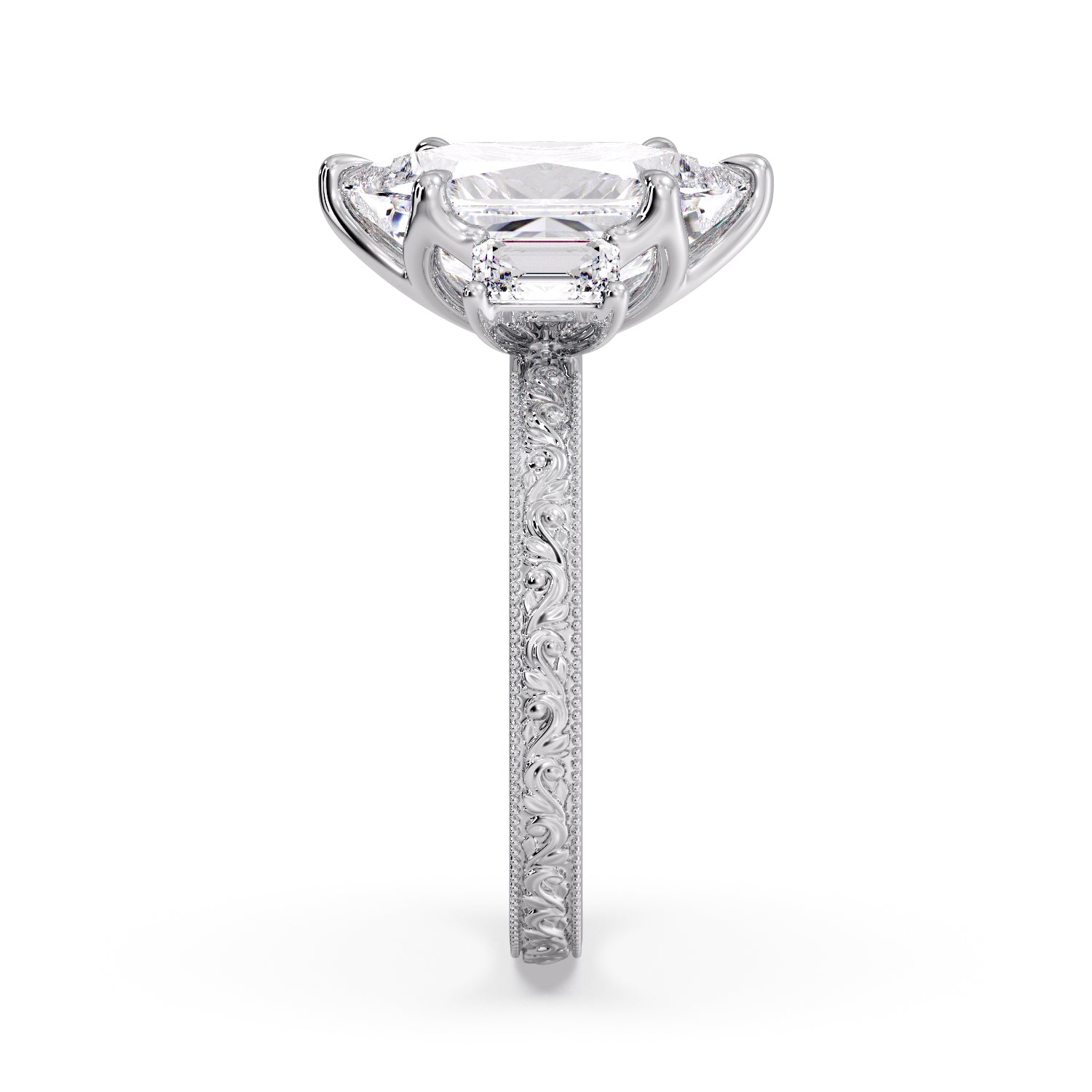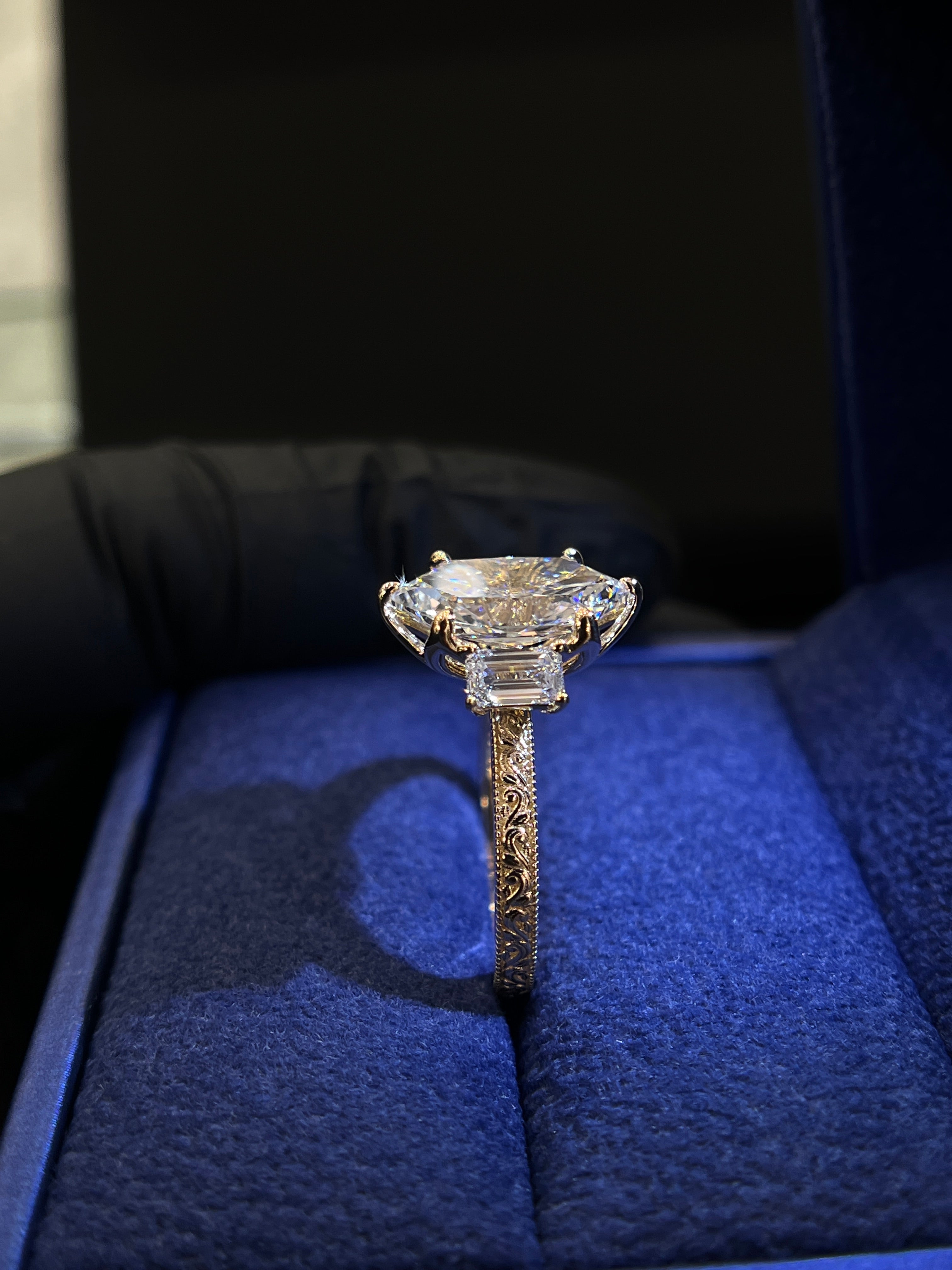 Floral engraved marquise ring
