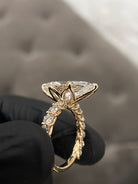 A Marquise Lab grown center diamond. Certified by IGI, D in color & Clarity grade VS1. Made and set in 14 karat solid gold, In my infinite round 3mm lab diamond band in a VS F color!