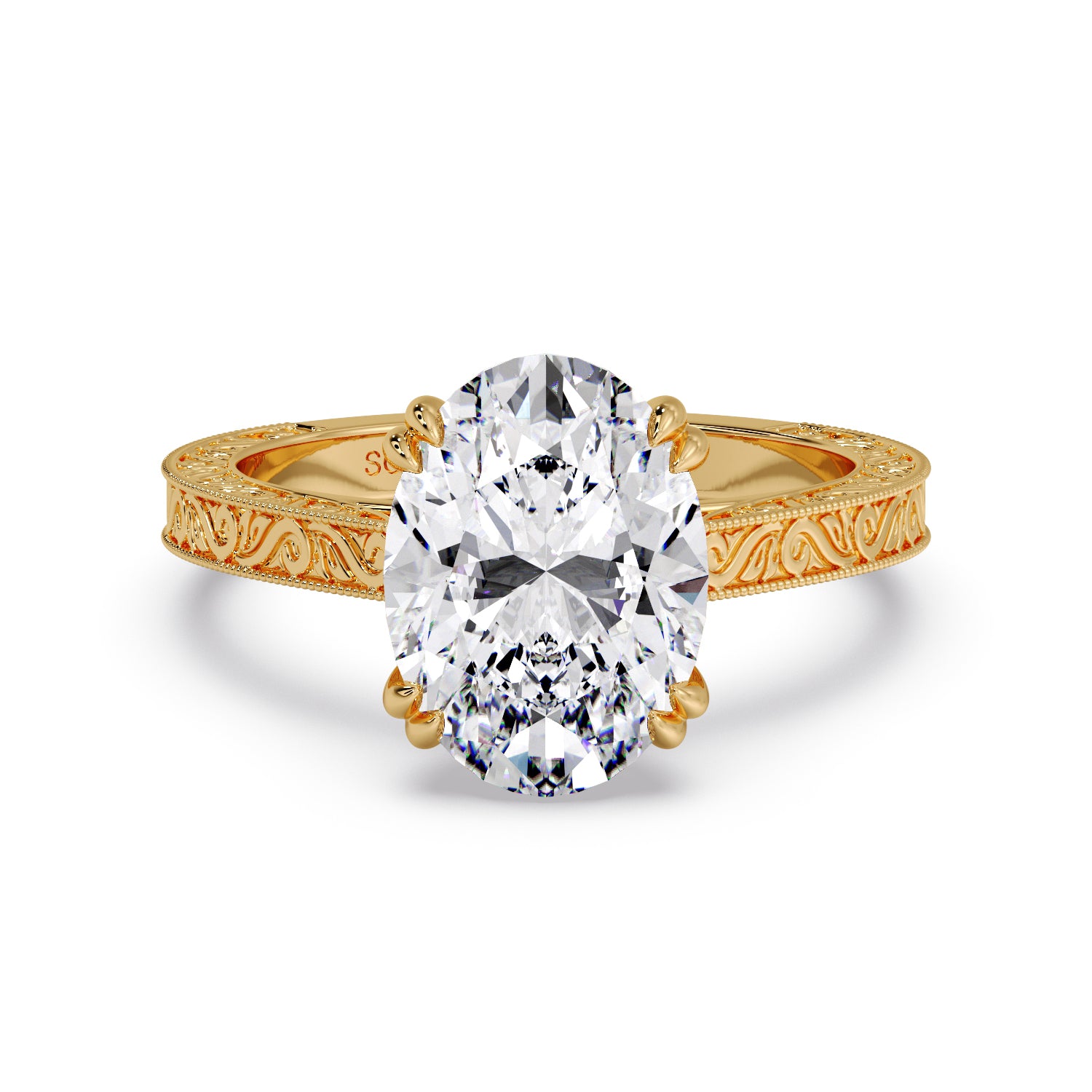 Oval floral engraved ring