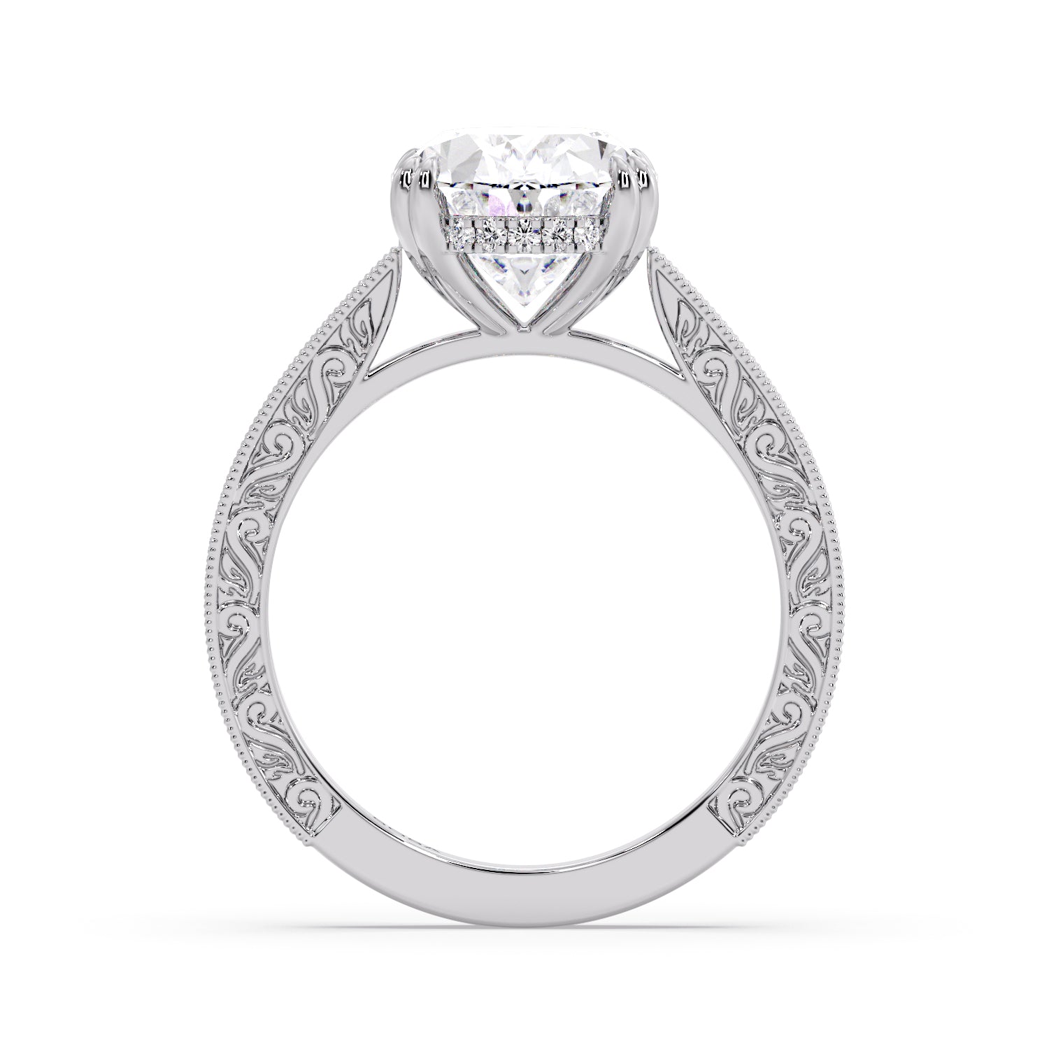 oval diamond set in my pave/hidden halo setting