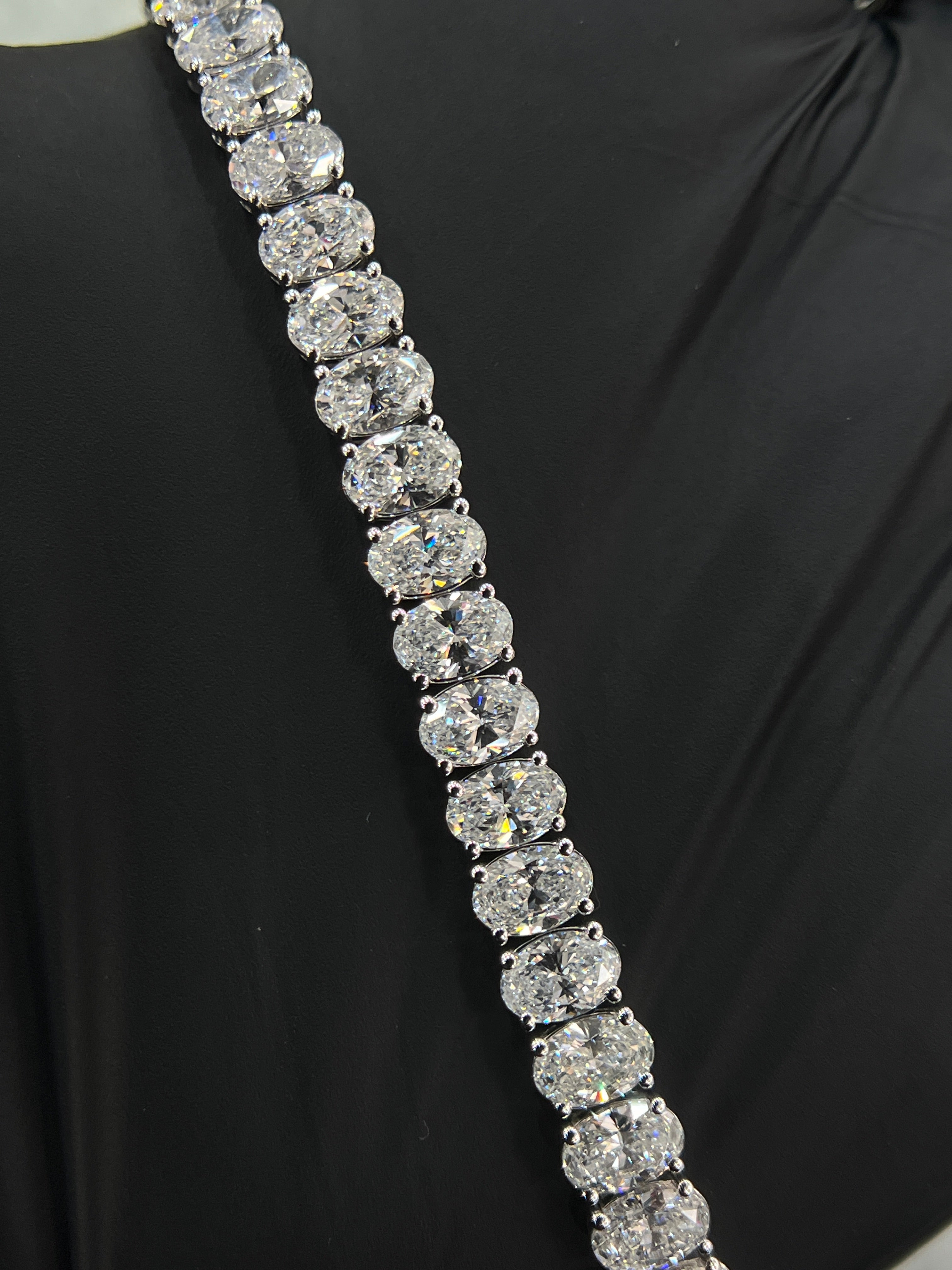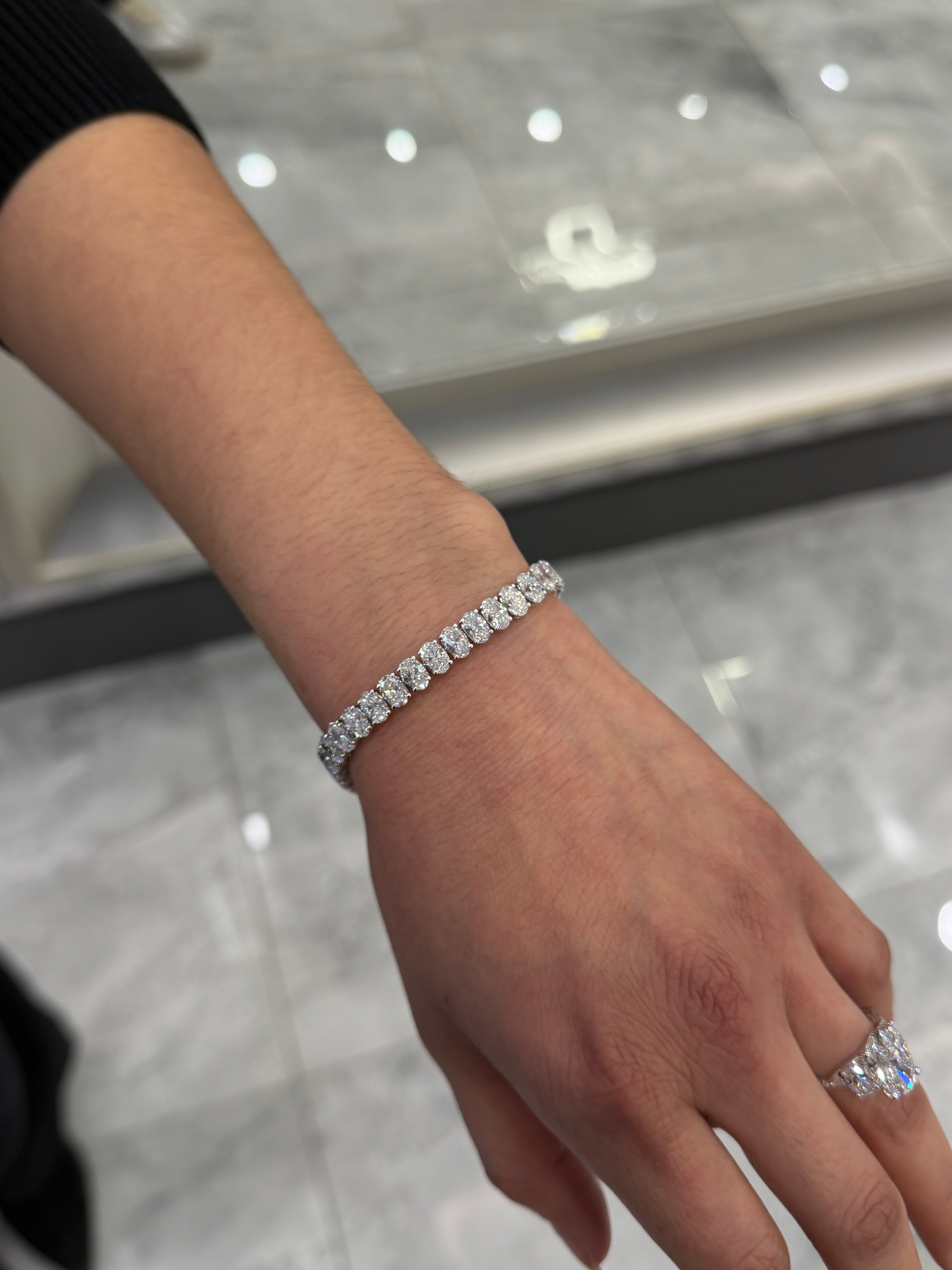 This stunning Lab diamond oval shape tennis bracelet expertly set in 14K white gold. Designed for timeless elegance with a modern edge, this piece delivers exceptional sparkle.