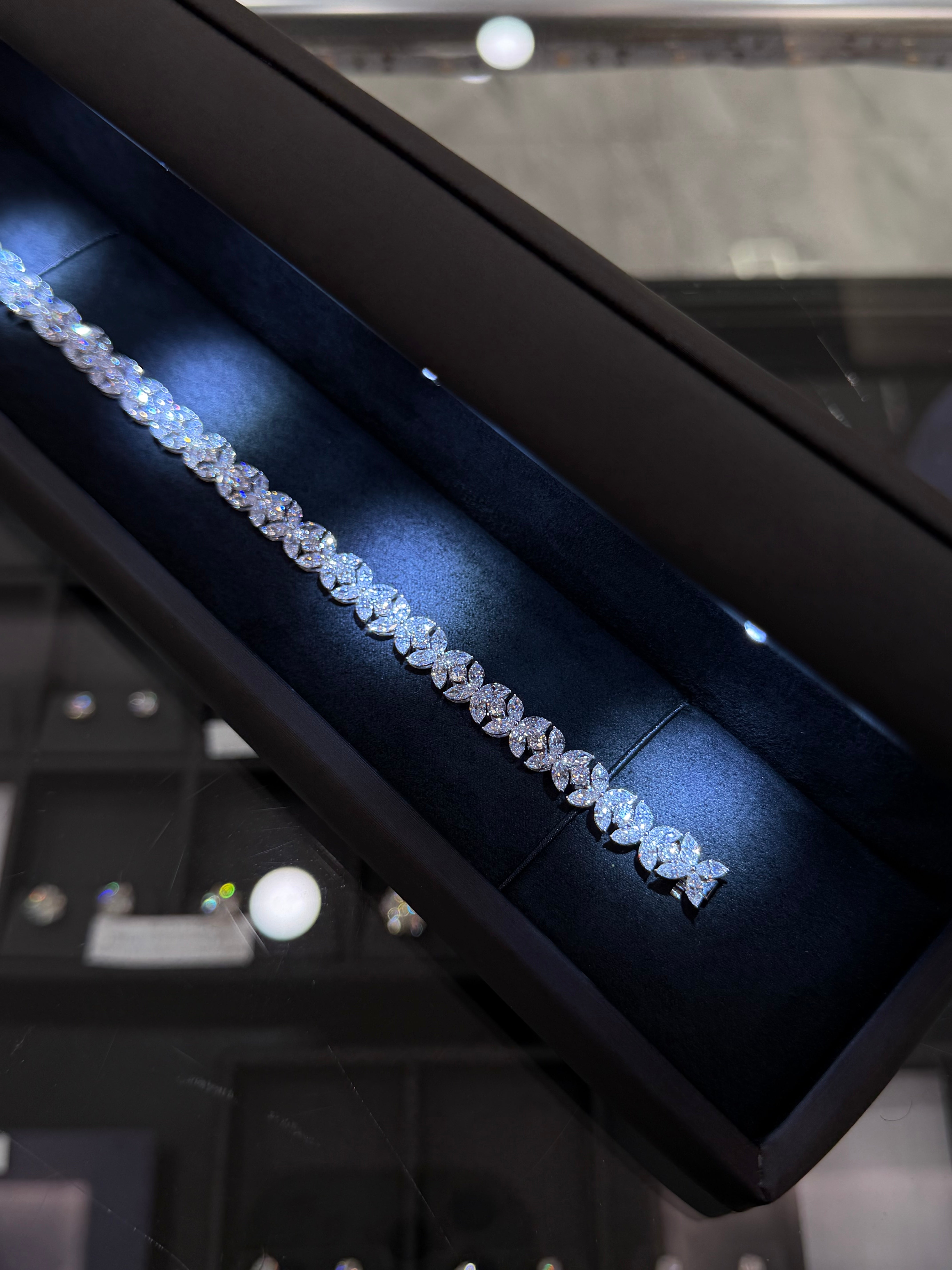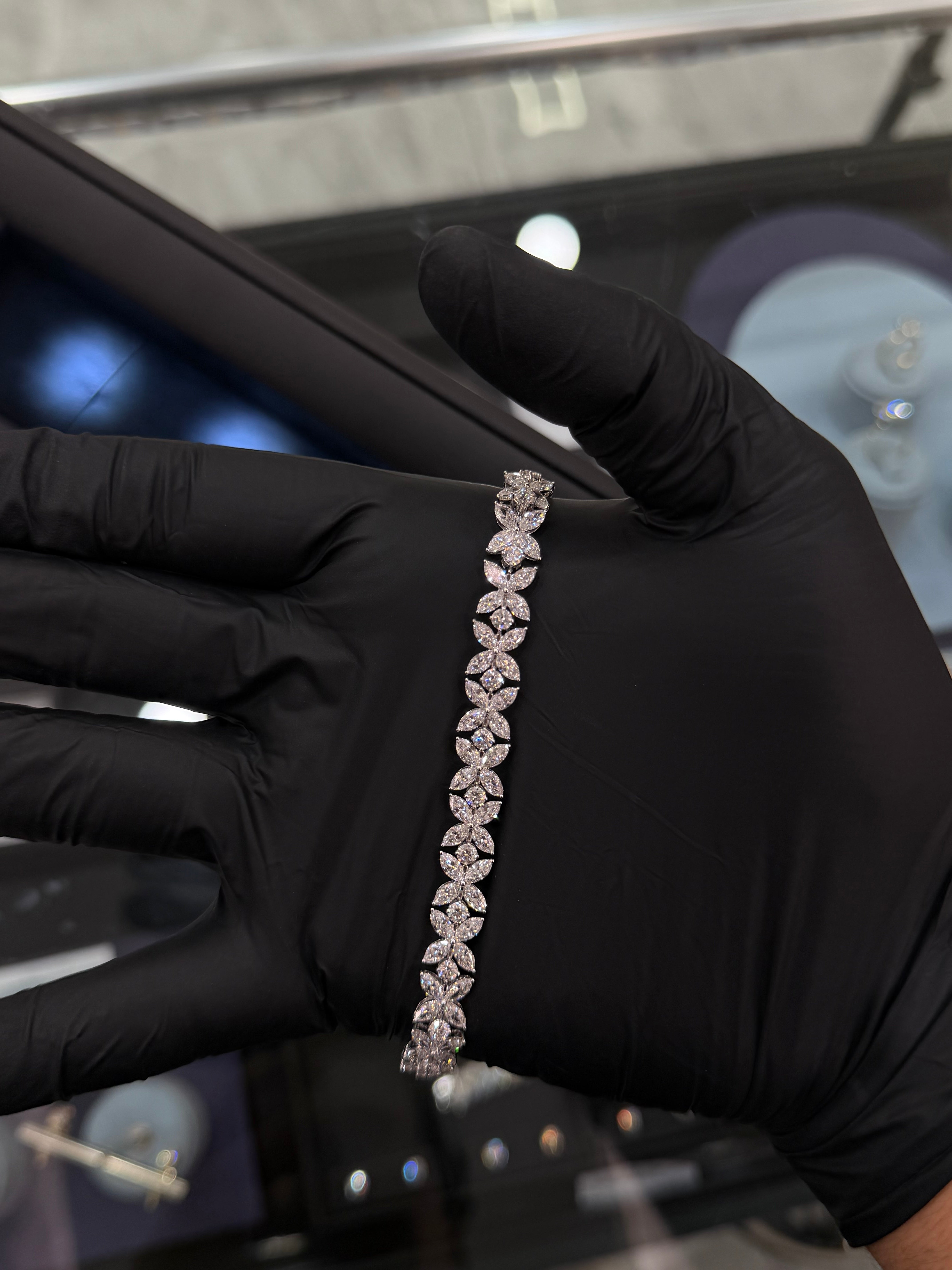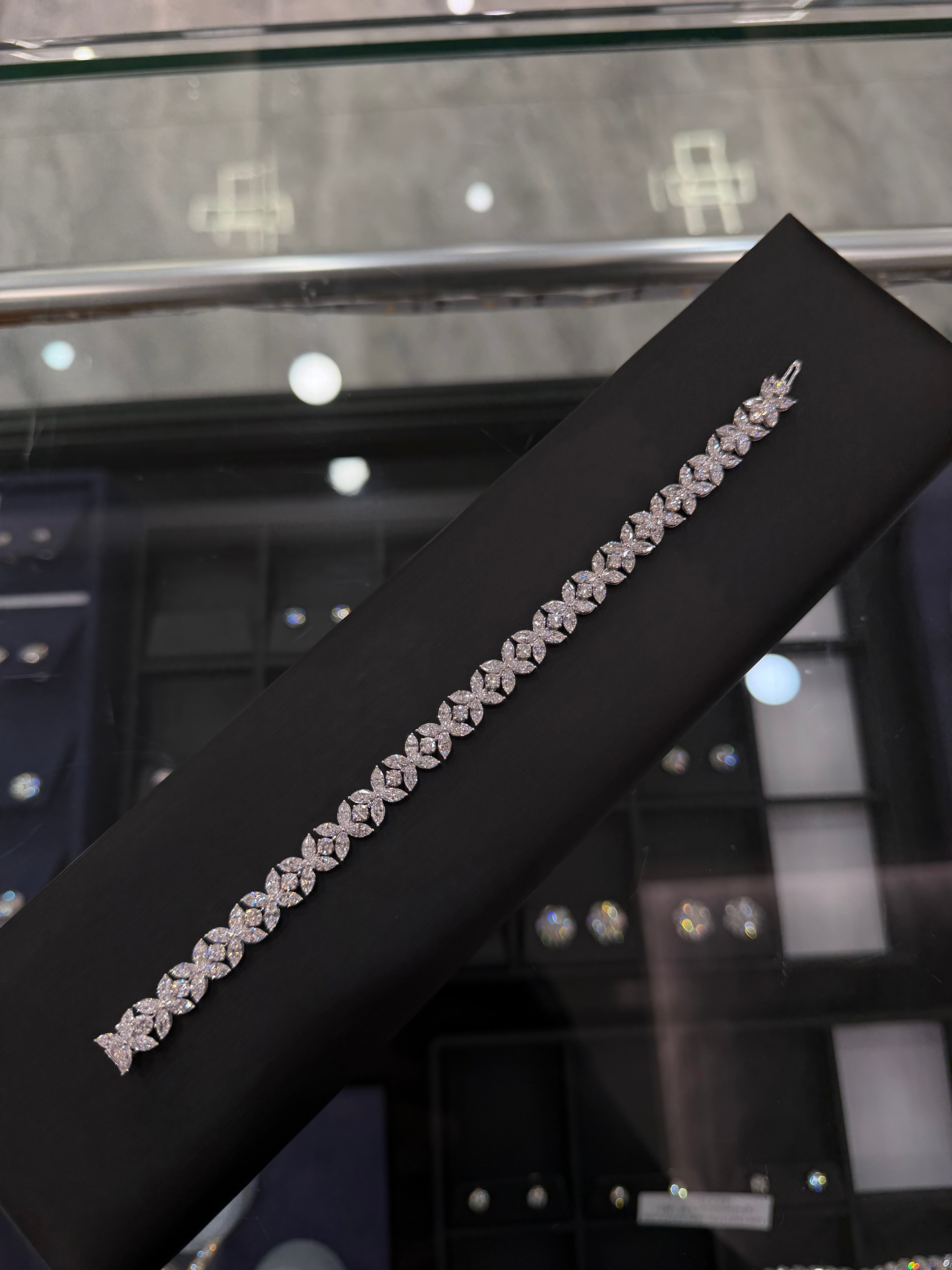 This stunning Lab diamond flower shape tennis bracelet expertly set in 14K white gold. Designed for timeless elegance with a modern edge, this piece delivers exceptional sparkle.