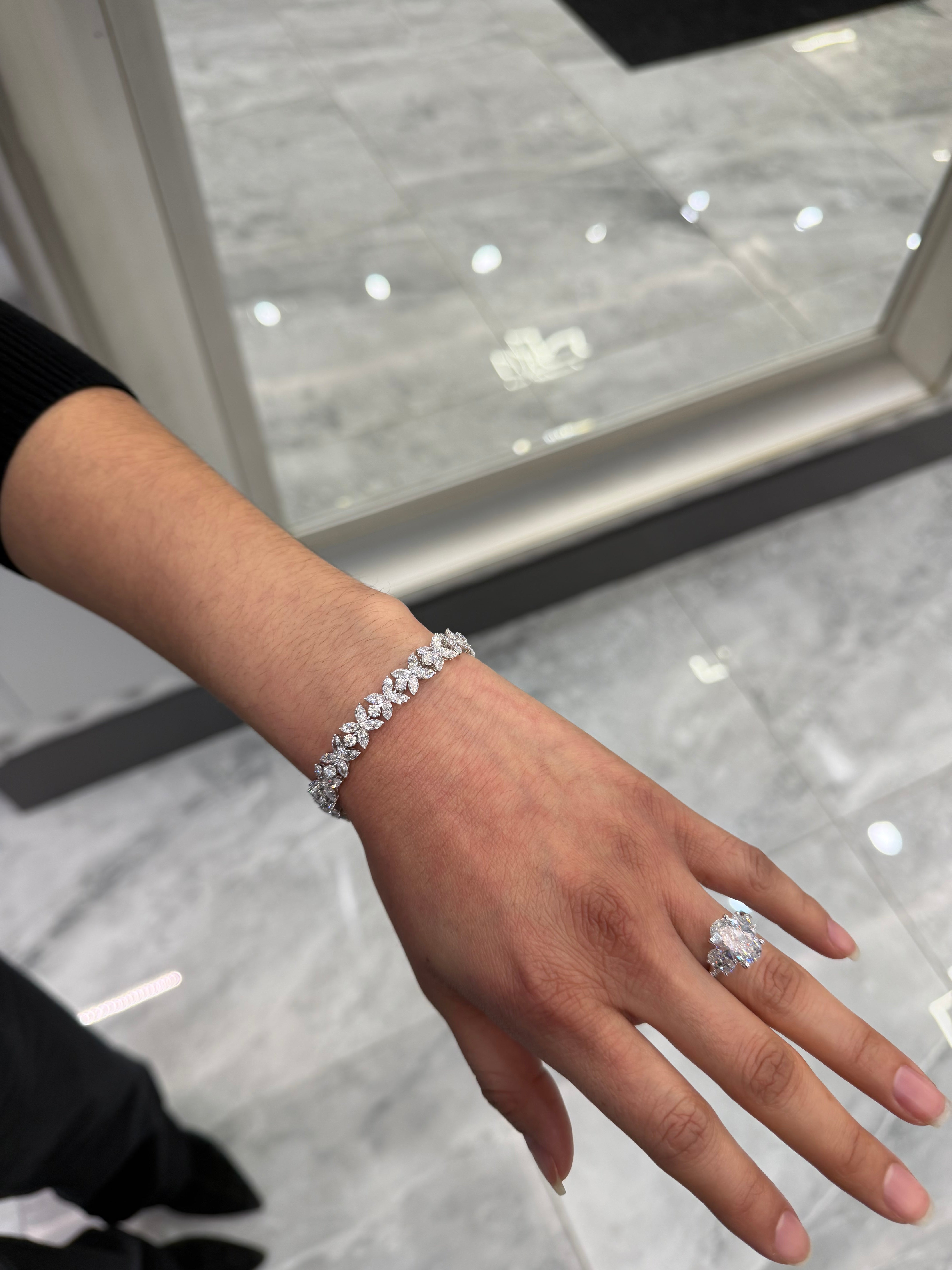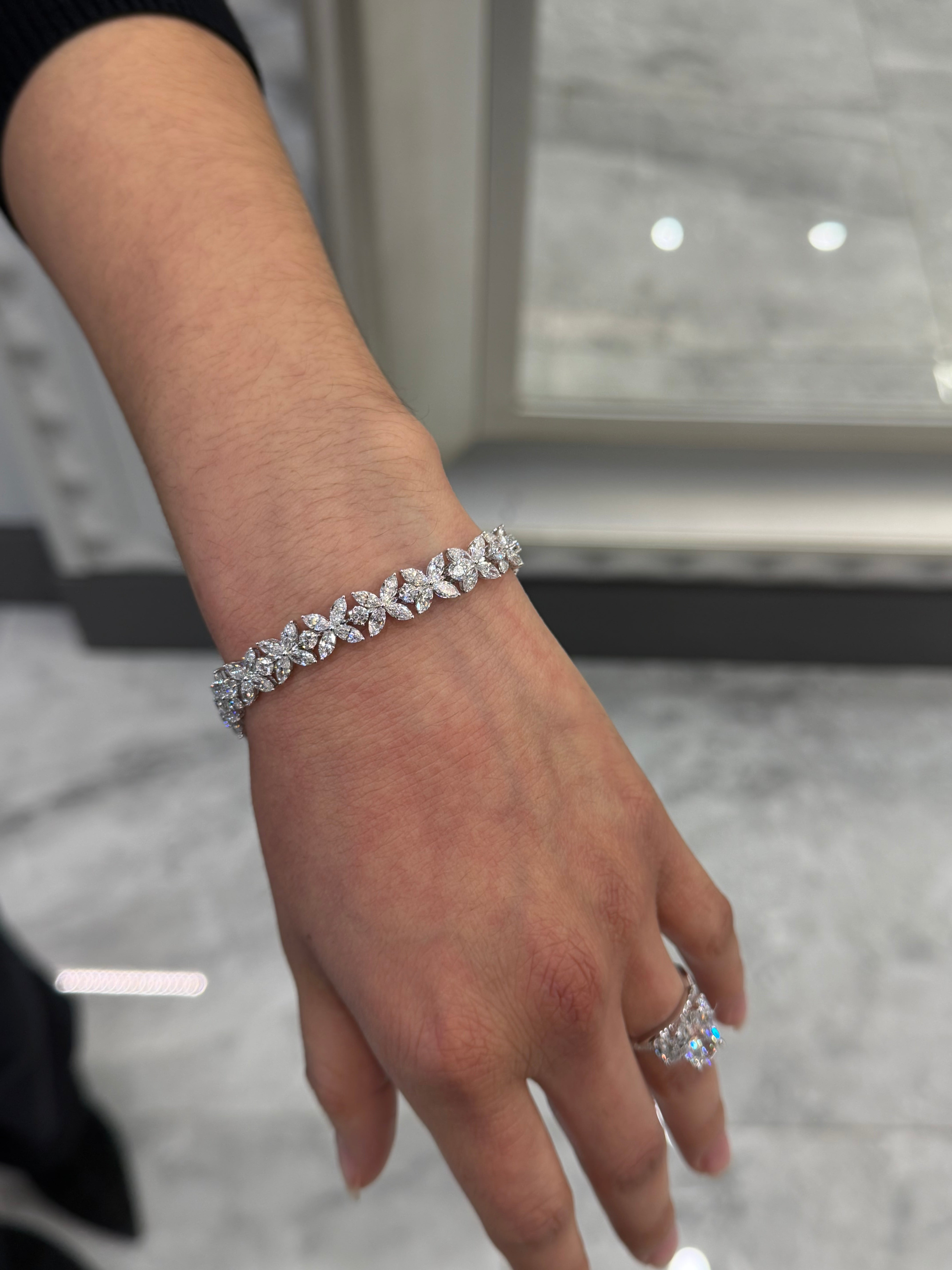 14k flower marquise & round tennis bracelet