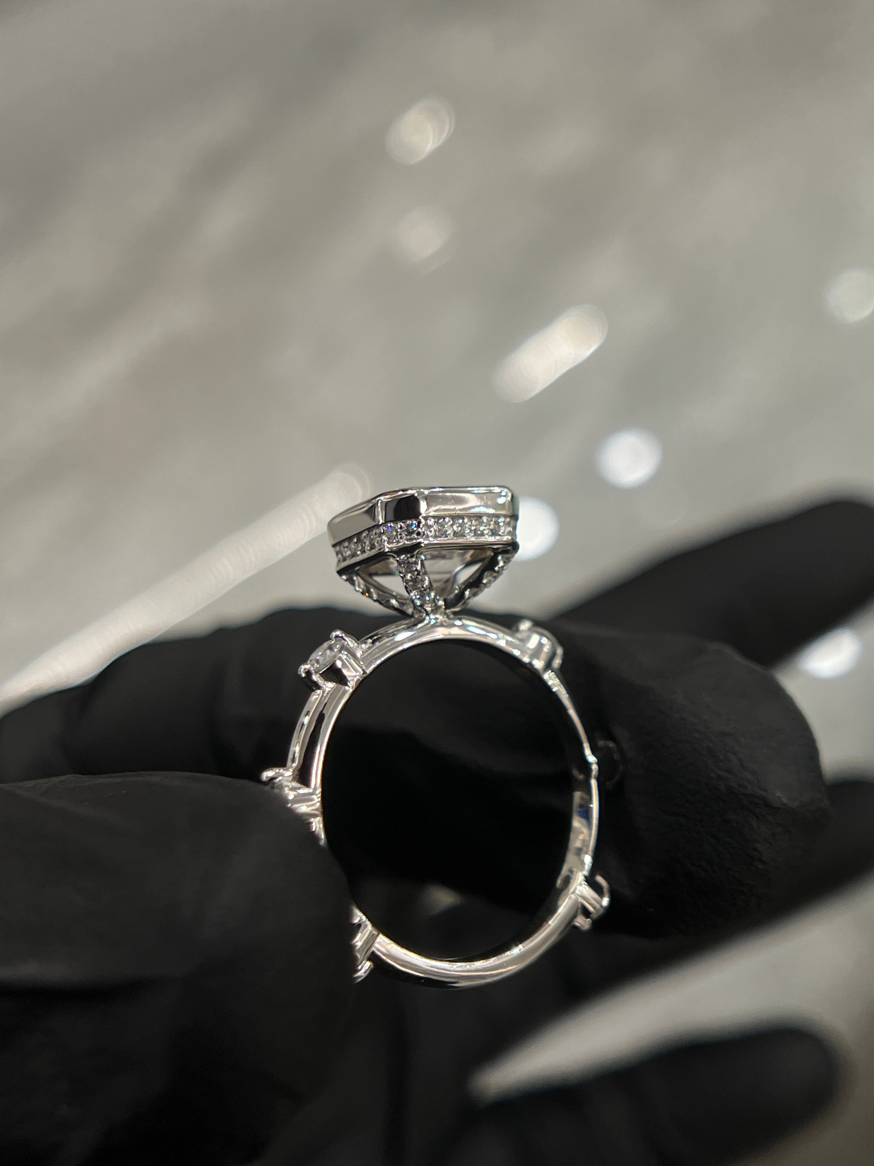 (2.5 carat ascher cut Diamond Shown in Photo)