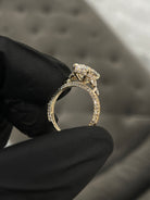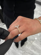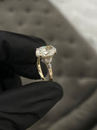 This exquisite ring features an oval cut lab grown diamond, graded VS1 in clarity and D in color, certified by IGI. Elegantly crafted to capture full details on band & perfectly set 3 stone marquises set on each side. The ring is made in solid 14 or 18kt karat yellow gold.