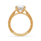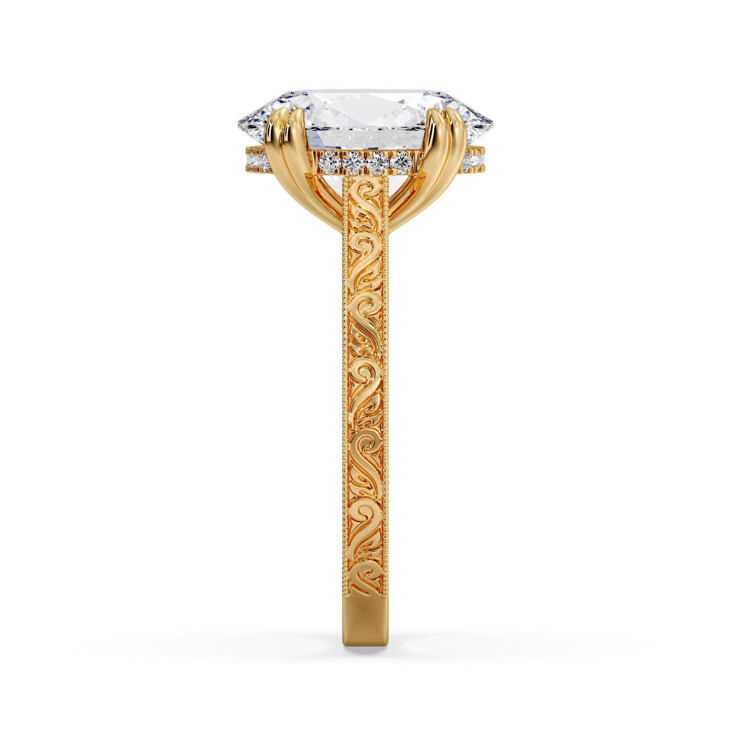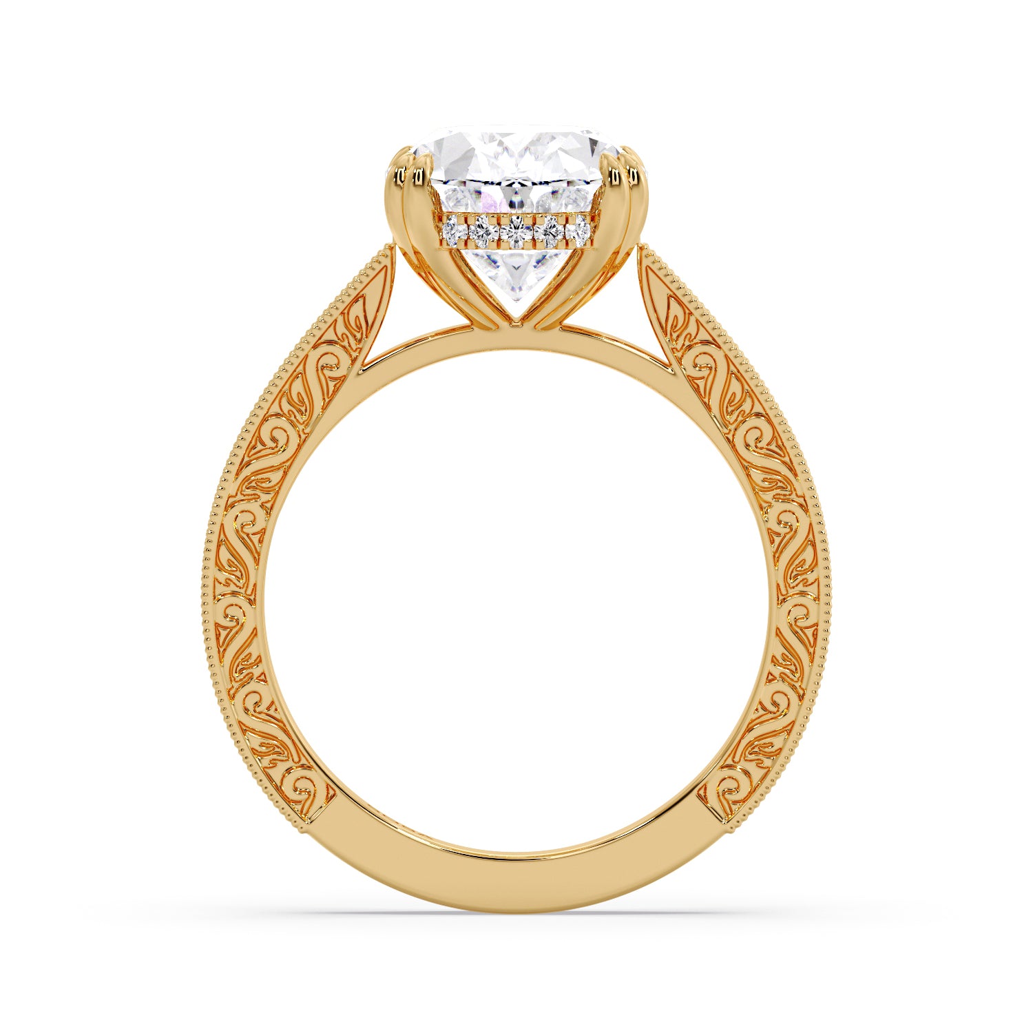 Crafted in 14K gold with an engraved designed band & Hidden halo